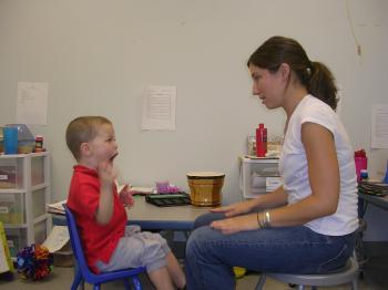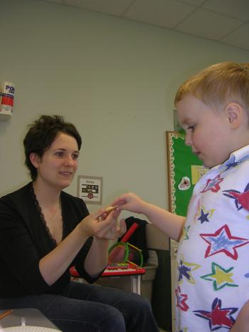 The school is separated into three classrooms that progress in levels of direct instruction, depending on the needs of the students. The range goes from a one-to-one student-to-teacher ratio classroom for non-verbal children who need to learn to communicate basic wants and needs, to a two-to-one classroom for children with emerging verbal skills and then to a three-to-one classroom where there is more group and peer-to-peer communication and interaction.