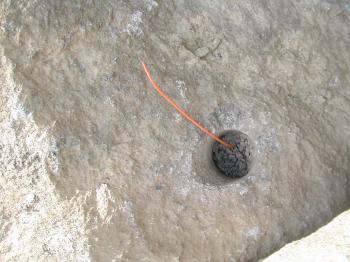 Fire officials were concerned that this hole drilled in a rock at a construction site off Chestnut Street still contained an explosive charge. It was later determined that the charge had already exploded and there was no danger.
