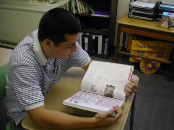 Westbrook High School senior Anthony Dahms looks over a textbook. Dahms said the recent round of Maine Educational Assesment testing showed that some students are not taking the test seriously, and as a result the school’s scores are suffering.