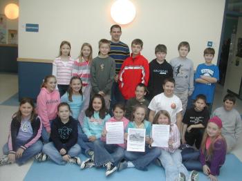 (Colby Congin kids) – Teacher Craig Forrest and his fourth grade students at Congin School are excited that Colby, their school’s mascot, is back on his shelf in their classroom.(Colby) – Colby the cougar is back after his disappearance caused a stir at Congin School.