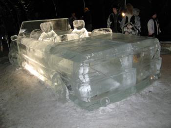 The Maine WinterFest snow sculpting exhibit also featured a life-size Mercedes made out of solid ice.