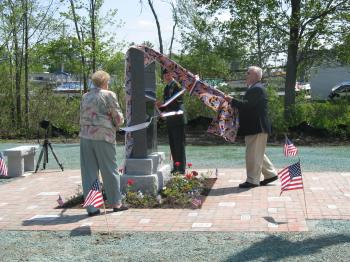 In 2006, the former chairman of the Raymond Board of Selectmen Betty McDermott presented Stiles a check of $7,500 to jumpstart the fundraising effort for the monument. The Raymond Lions Club added another $1,400 to the effort. All their efforts came to fruition during the sunny Memorial Day afternoon ceremony.
