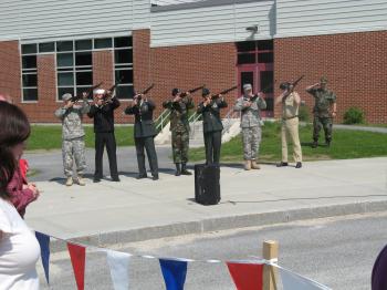 Wreathlayingceremony3: Servicemen from various military backgrounds fired a twenty-one gun salute in three volleys at the high school.