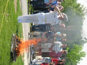 Commander Dana Stetson-Reed, a Navy Reserve chaplain and the senior minister at the North Windham Union Church, United Church of Christ, was on hand and burned a collection of American flags in tribute to Maine soldiers who have died for their country.