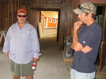 Crookedhouse1-3: From left: Glen Halliday, 36, of Windham, and his cousin Jeff Leighton, 33, of Gray, run Kids Crooked House. They sell customized playhouses for kids and say they need the help of the community to win enough votes for a contest with Yahoo.com to win a big advertising package.