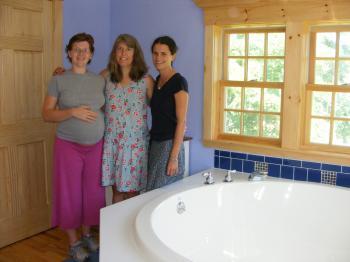 AnnMarie RianWanzeck, CPM, Heidi Fillmore-Patrick, CPM, and Robin Doolittle, CPM in the birth room at The Birth House, a new freestanding birth center in Bridgton.