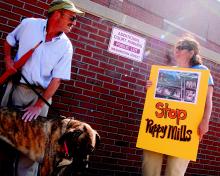 “I came because animals should not be treated in a way to make money off of them,” said protester Maggie Jones, who lives a short distance from the kennel in Buxton. “Puppy mills in general deny basic care.”