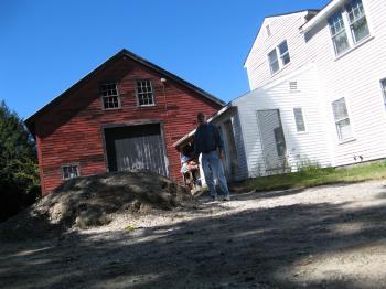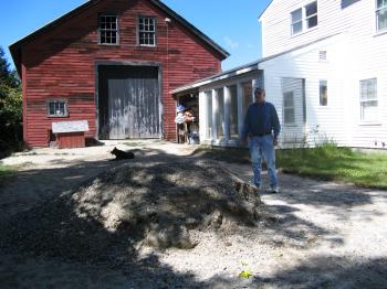 Pavingscam1-2: State Rep. Gary Plummer of Gray Road in Windham stands behind the pile of driveway gravel a suspicious paving business gave him as a sample. Their method of operation resembles an old scam where they collect money for work and skip town.