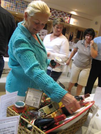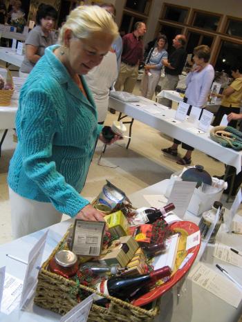 ChamberSilentAuction2-4: Beth DeSimon of Windham looks over silent auction items at the 6th Annual Live & Silent Auction & Taste of the Towns was held at Camp Sunshine on Friday, Sept. 21.