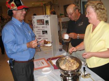 ChamberSilentAuction5: Ed Getty tries a pork dish provided by Willie Angelino and Peggy Rowe from Charlie Beigg
