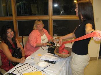 ChamberSilentAuction8: Real estate agent Tricia Zwirner offers some 50/50 raffle tickets to Maggie Benson and Debbi Davenport at the 6th Annual Live & Silent Auction & Taste of the Towns was held at Camp Sunshine on Friday, Sept. 21.