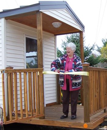 Aceto said students from throughout southern Maine take on projects such as this for Future. Here, both the automotive and carpentry teams worked on the frame and interior, including the porch where Moran snipped the ribbon Monday.