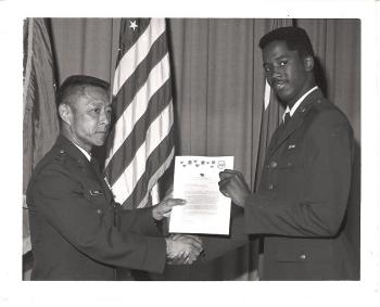 Lacey1: Andre Lacey at Lackland Air Force Base San Antonio, Texas in 1989 receiving his first Air Force promotion, from Airman basic to Airman.