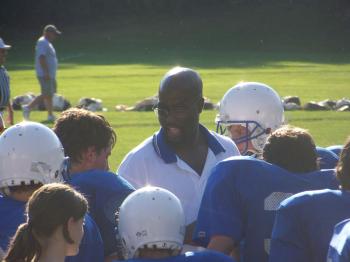 Lacey2: Lacey today giving commands to his football players at a game in Naples.