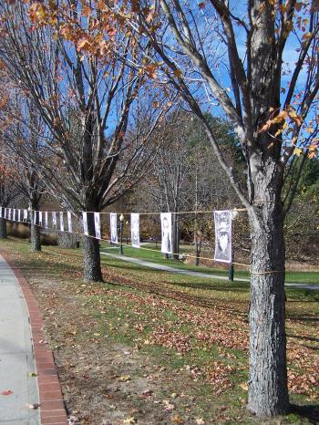 Drivers climbing and descending the hill on Main Street by Shorey Park found their attention diverted by “Faces in the Day in a Life;” more than 40 black and white photographs by Elihu Acker clipped to ropes tied to trees at the edge of the park.