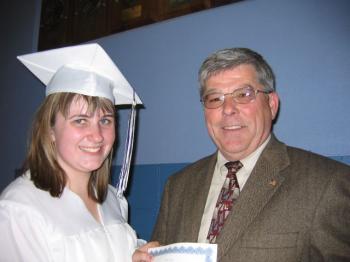 Westbrook High School Key Club President Hillary Knight is presented with a $1,500 scholarship from Westbrook Kiwanis/Key Club by Key Club adviser John Bernier Thursday in recognition of her outstanding leadership and community service.
