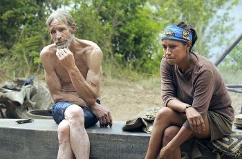 South Portland resident Bob Crowley, also a physics teacher at Gorham High School, sits with fellow contestant Susie Smith. Crowley, considered one of the most trustworthy players until this week, gave one of the other contestants a fake immunity idol.