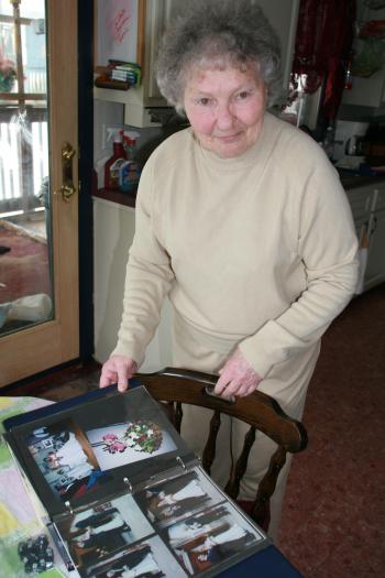 Theresa Brautigam shows off a scrapbook of photos and newspaper clippings from the ceremonial dove release business she runs with her husband, Frank, in Naples.