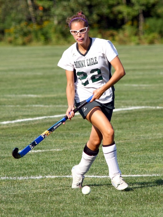 Bonny Eagle’s Peyton Dostie heads toward the goal during Tuesday’s field hockey game against Marshwood.