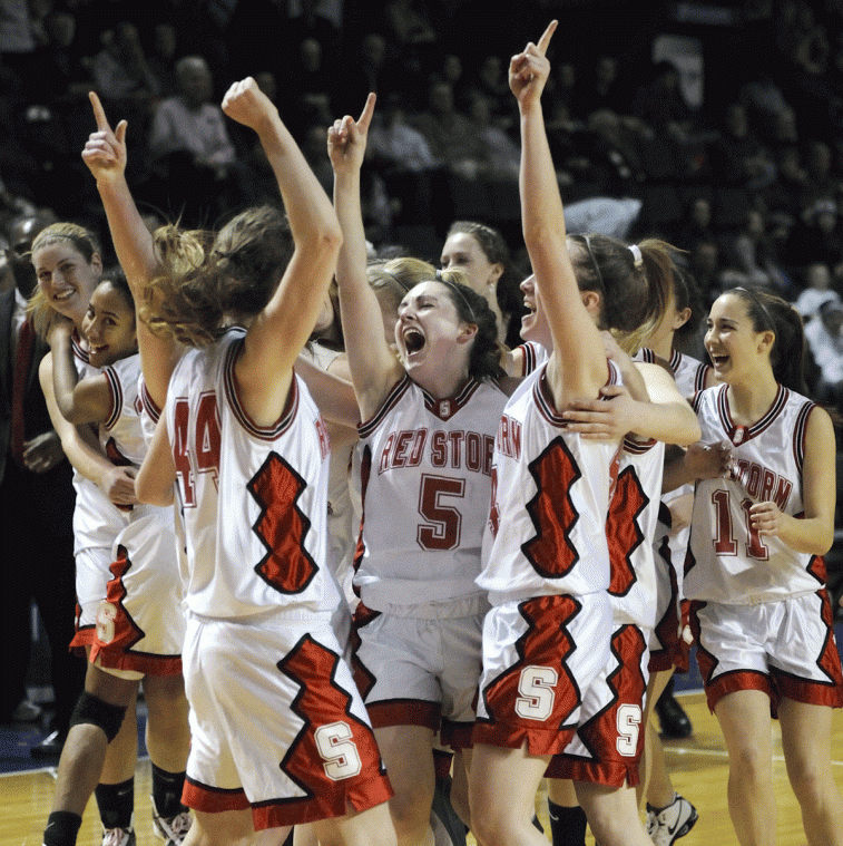 It was another patented scrappy Red Storm win on Saturday, but this time with a heap of heroics thrown in at the end as Scarborough knocked off two-time defending state champions Deering 37-34 to capture their first ever Western Class A championship in girls basketball.