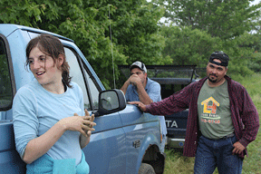 The group’s idea has been met with enthusiasm by the farm owners taking part in the project. Penny Jordan of Jordan’s Farm, where the company members have been doing everything from weeding to harvesting, helped develop the original idea for the play with Hahn. They discussed building a play around a community in the midst of rapid change, with farming and agriculture at the center.