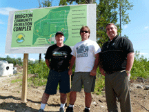 Bridgton Recreation Advancement Group Vice President Larry Carter, Publicity Chairman Jon Evans and President Bill Macdonald pose in front of a billboard showing the possible field orientation for the recreation fields being built in Bridgton. While the complex is still a work in progress with more fundraising needed, the group is encouraged by a recent groundbreaking and hopes to be mowing grass by the end of the season. (Staff photo by John Balentine)