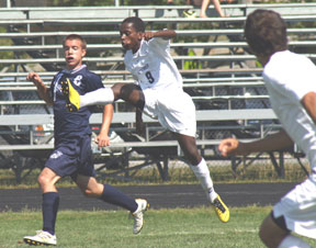 Westbrook’s Bizimana Mporwiki takes to the air as he follows through on a kick against Presque Isle on Saturday. The Blazes open the season at home against South Portland on Sept. 4 at 11 a.m.Staff photo by Mike Higgins