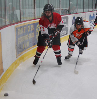 The assault wasn’t over, though. Just 19 ticks after Rutt’s second, Biddeford let in a third goal when the puck was slapped out of a melee just in front of the crease by Kaitlyn Reynolds. Scarborough later netted its fourth when Rutt completed the hat trick on a breakaway with 2:33 left.