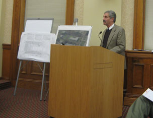 Project manager Dustin Roma of Sebago Technics presented details Monday for the expansion proposal on the 4.6-acre Knowlton Machine site.