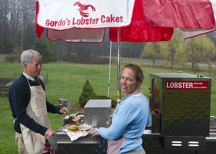 Cape Elizabeth residents Gordon Smith and his wife Carolyn are busy prepping their lobster cake cart for the upcoming season. Last year, the Smiths were manning the cart on Commercial Street in Portland. This year, they’ll be one of the vendors approved for food sales in Fort Williams Park. (Photo by Rich Obrey)