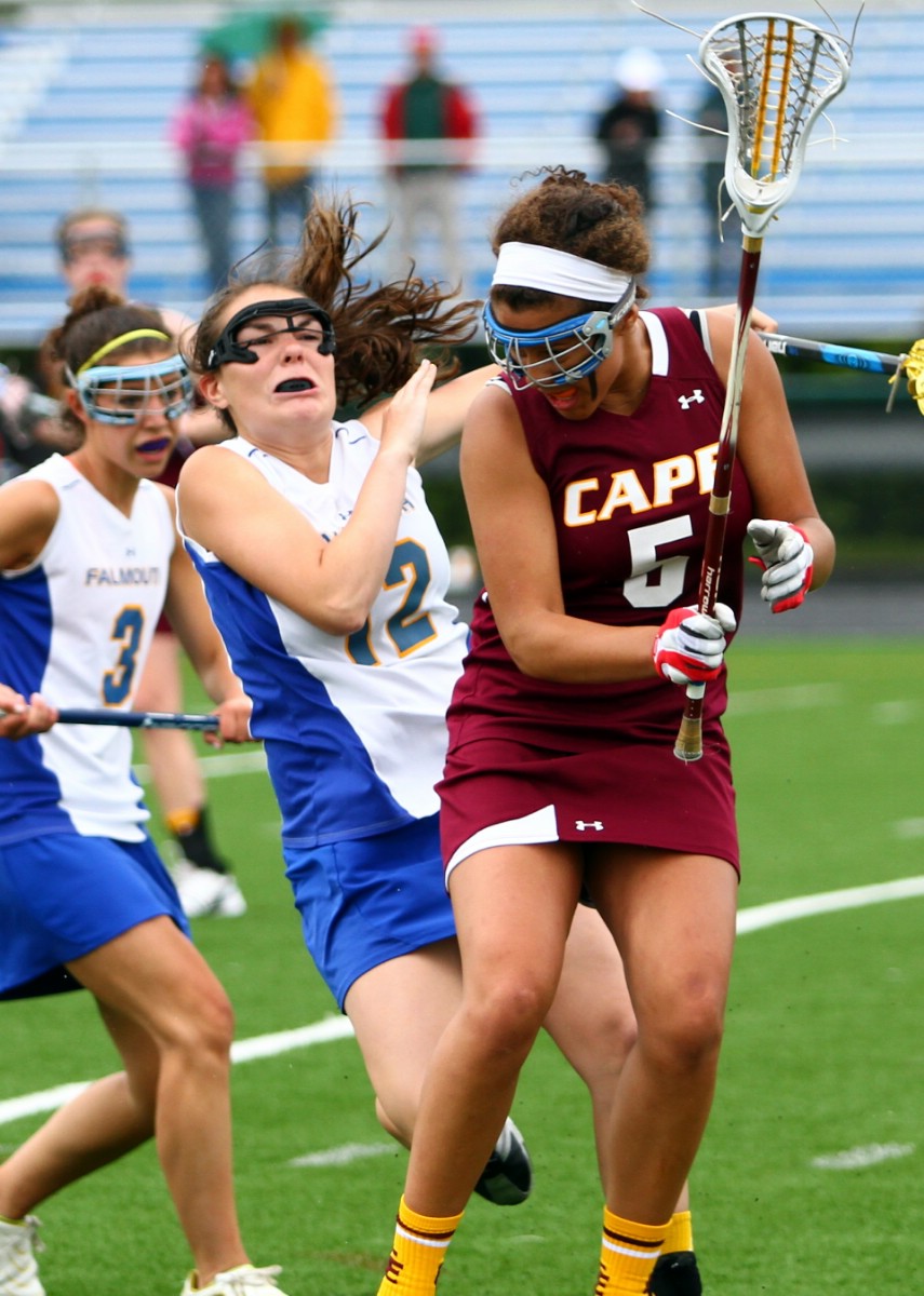 The third-ranked Capers were down 7-5 at halftime, but saved their best for the second half, taking the lead for good on junior Janessa White’s goal with 14:21 to play and their tenacious defense and junior goalie Elin Sonesson held the desperate second-seeded Yachtsmen scoreless for the final 9:30 as Cape Elizabeth improved to 10-3 with a 14-12 win, ending Falmouth’s season at 7-6.