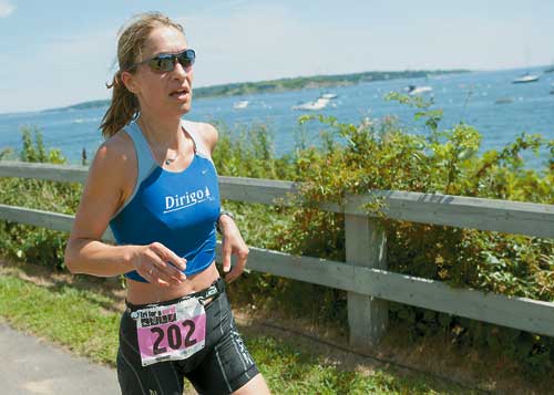 “I had breast cancer 11 years ago,” she said. “But I did this for my sister-in-law, Liz Bugbee, who died of it in April. It was for her. She was afraid of swimming, but later on in her life she decided to conquer that, and she entered the Tri. She was a very good runner – she placed in Beach to Beacon in her age group. And this was really just something for her – it’s for her.”