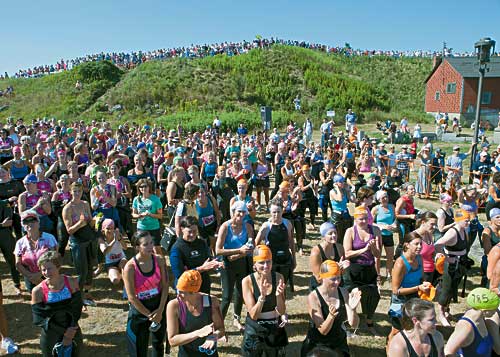 But ask the women participating in or watching the 2011 Maine Cancer Foundation’s Tri for a Cure in South Portland “who won?” and you’d likely get a bit of a blank stare, followed by a soft, knowing smile. Who won? Everybody who was involved – that’s who. Though, for the record, Anne Wilkinson of Falmouth won her third consecutive Tri for a Cure with a time of 1:15:34.