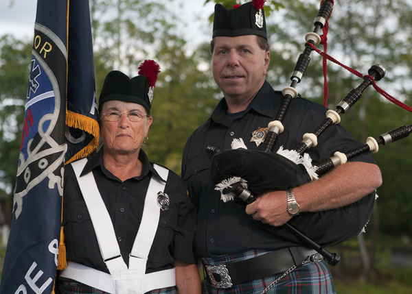 You’ve seen them, walking in tight formation along a spectator-lined parade route, bedecked in their blue and red Maine Dirigo tartan kilts – a couple dozen bagpipers and drummers with a public safety background combining to power out a mesmerizing marching tune.