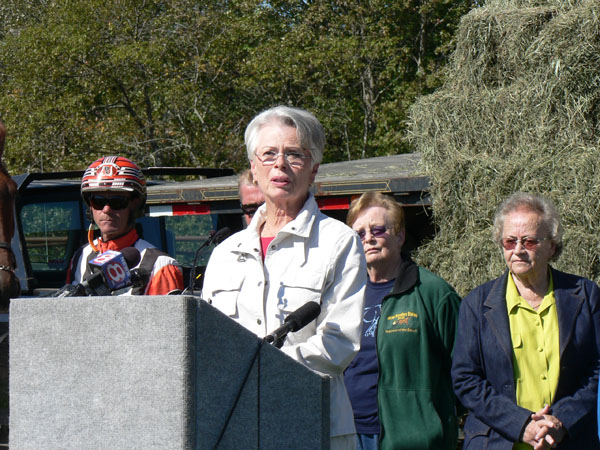 Sharon Terry, owner of Scarborough Downs, speaks at Monday’s