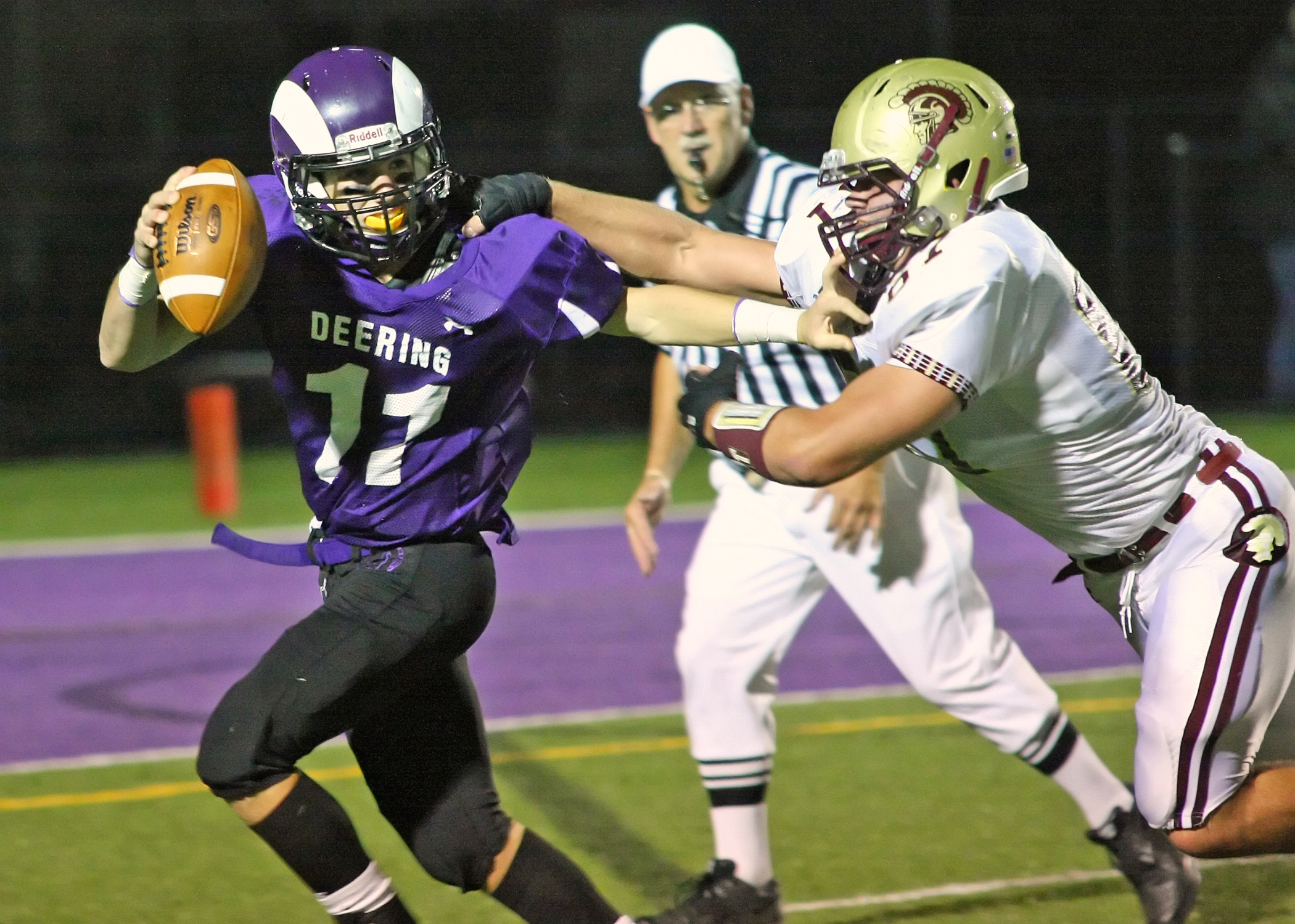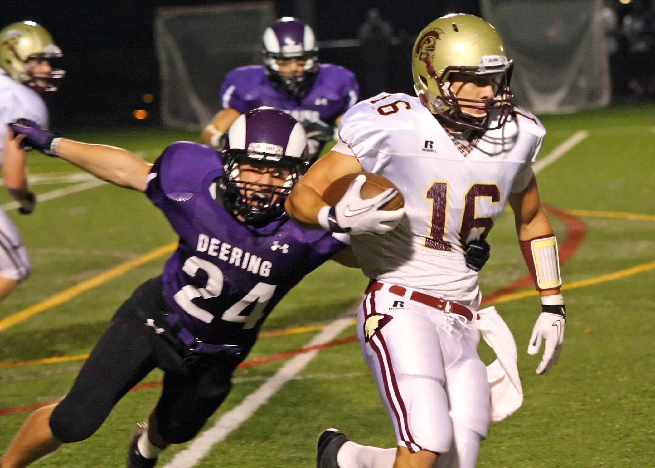 Deering opened the game with a six-play, 83-yard scoring drive. Senior quarterback Matt Flaherty started it off with an 11-yard run. Three plays later, he hooked up with senior Matt Kimball for a 40-yard strike on third-and-long. An 8-yard pass from Flaherty to senior Renaldo Lowry was a prelude to the play that followed, as the duo again connected, this time for a 25-yard touchdown. Lowry got behind the defense and Flaherty hit him in stride in the end zone — the first of Lowry’s three long touchdown receptions.