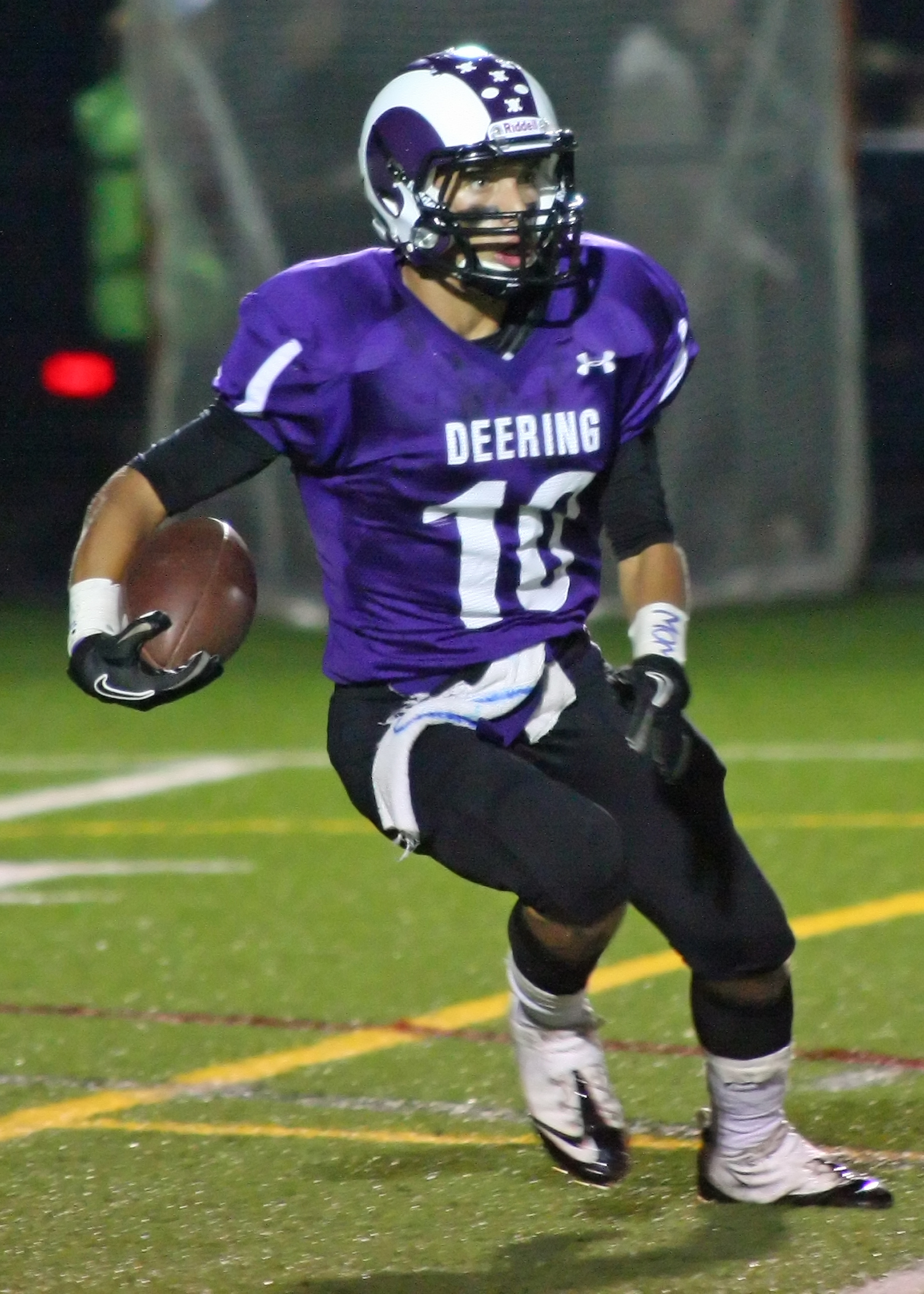 Deering senior Renaldo Lowry had three long touchdown receptions Friday night.
