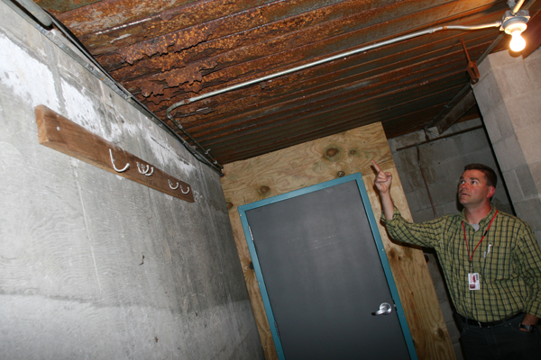 And, in the bottom two-thirds of the iceberg, Jepson said he spends $30,000 each year to clean mold out of the building’s four-foot-high utility tunnels, due to an OSHA requirement that he hire people trained to work in confined spaces. Even worse, he said, the steel plating on the ceiling of those tunnels, which holds up the school’s concrete floor, is beginning to run through.
