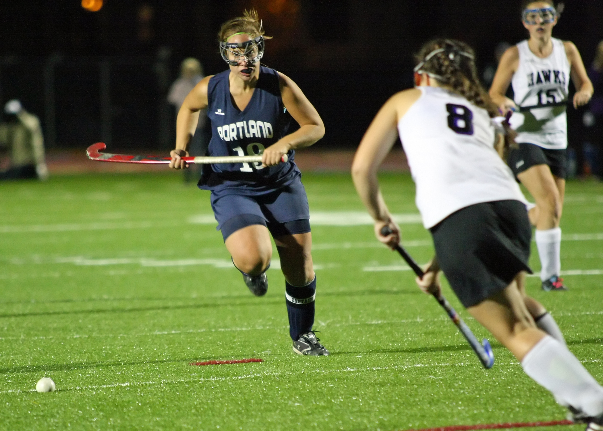 The Hawks came out the more poised and aggressive team and seized control midway through the first half when they scored on successive penalty corners in a 63-second span. Marshwood added one more goal before halftime to seemingly put the Bulldogs away, but this group never quits and sure enough, with 26:10 to play, senior standout Raechel Allen scored to give Portland life.