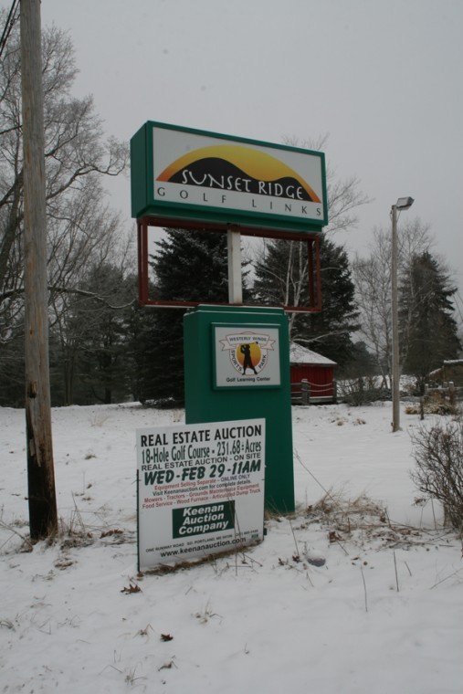 The property, located on Cumberland Street, is listed on the website for South Portland-based Keenan Auction Co. under the full name, Sunset Ridge Golf Links and Westerly Winds Sports Park. A spokesman for the company declined comment on the auction. According to the website, the property includes an 18-hole golf course, clubhouse, in-ground pool, tennis courts, driving range, miniature golf course and basketball courts.