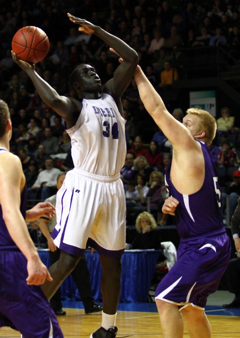 Twenty-seven seconds into the final period, Abwoch attempted a shot which went around and around and around the rim before falling off, but he was there for the rebound and laid it home to make it 42-29.
