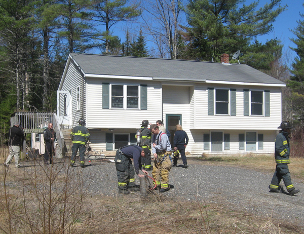 Gorham Detective Sgt. Dana Thompson is investigating a fire Tuesday outside this Spiller Road house in Gorham. Two Gorham public safety officials called the fire suspicious. (Staff photo by Robert Lowell)
