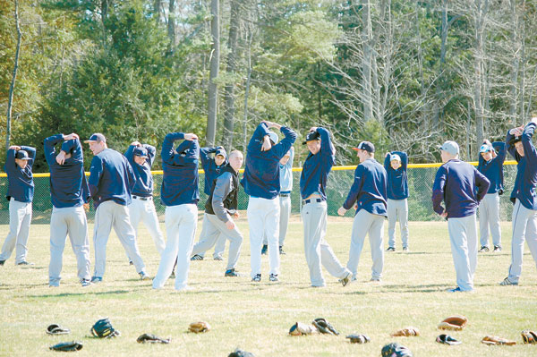 With 11 players gone from last year’s 14-2 team, the Blazes will have to come together as a team in order to make it back to the postseason. Here, the Blazes stretch as team prior to practice last week at Westbrook High School.