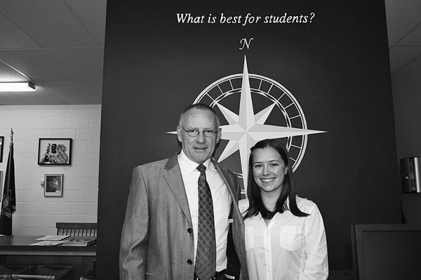 Westbrook High School senior Gabby Ledue was recently named as the winner of the 2012 Maine Principals’ Association Principal’s Award, an honor that she was nominated for by Westbrook High School Principal Tom O’Malley, left.