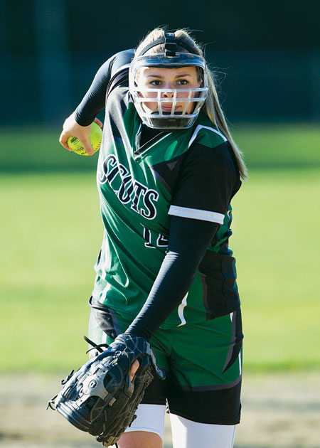 Senior pitcher Taylor Hanson delivers a pitch on her way to the win.