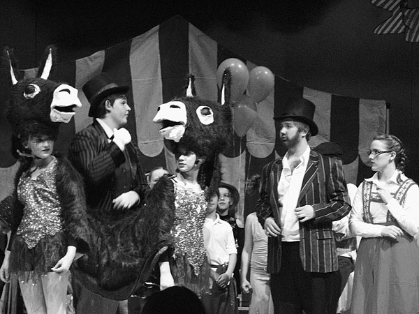 Dr. Dolittle, played by Zack Fisher, is brokering a circus deal with the Pushmi-Pullyu (Sarah Mariski and Madelaine Panici) and Albert and Gertie Bloom (Brian Sidders and Ceara Buzzell) to perform at the Bloom’s circus. A cast of more than 65 students at Fiddlehead Arts Center from ages 4-16 will be performing Dr. Dolittle this weekend at the Gray-New Gloucester High School.