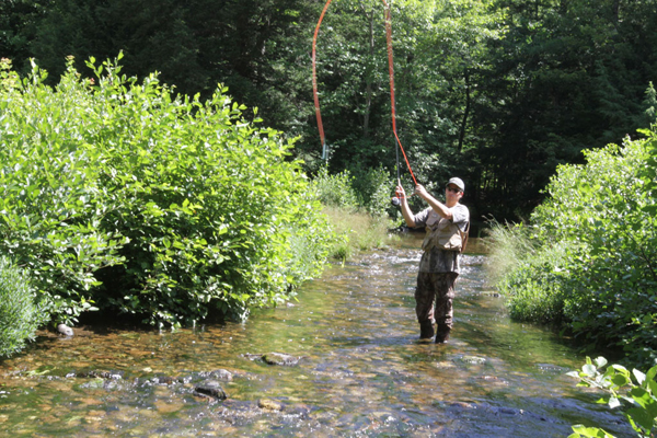 A fisherman enjoys a stream in the Jugtown Forest. The 5,000-acre forest is owned and managed by Hancock Land Co., sister company to Hancock Lumber. On Friday, May 4, the companies planned to celebrate a grand opening of trail signage and trailhead kiosks that offer improved public access to the property. (Courtesy photo)