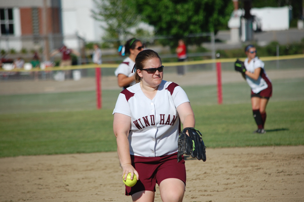 Windham’s Sara Richards warms up after being summoned in relief of starter Maddie Elliot.