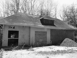 Though severely compromised from a structural point of view, the old train depot in South Windham still has some charm, seen in its distinct lines and materials. The Windham Historical Society is attempting to salvage the building, in whole or in part, for possible reassembly in its proposed Village Green in Windham Center.