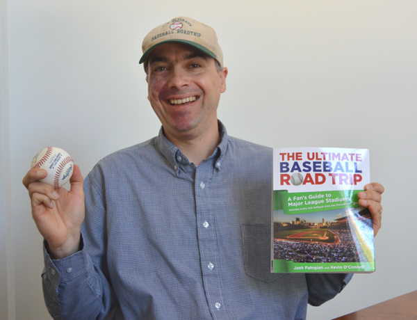 Josh Pahigian, an adjunct faculty member at the University of New England, recently released the second edition of “The Ultimate Baseball Road Trip,” which takes readers to each of the 30 ballparks in Major League Baseball. (Photo by Lucy Sommo)